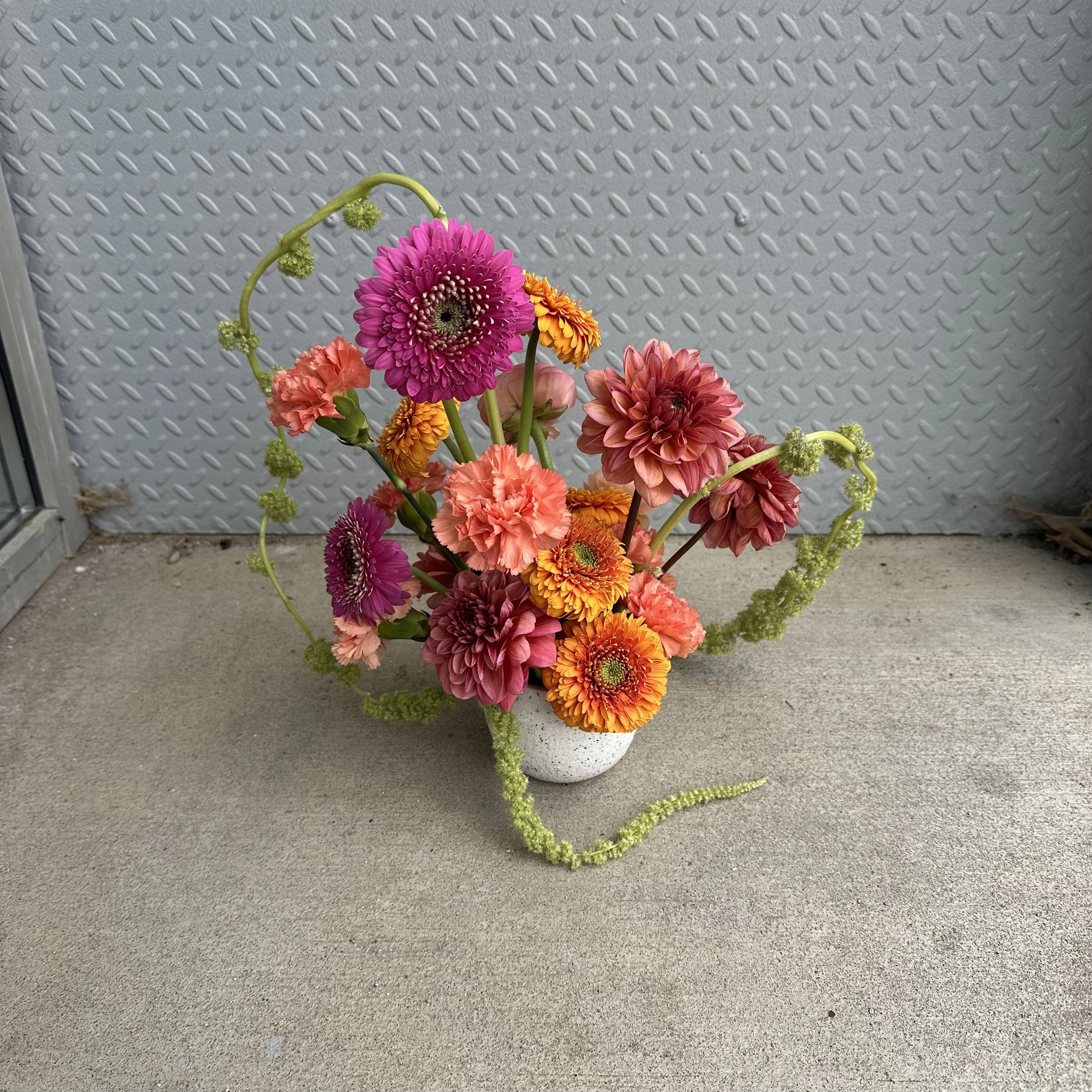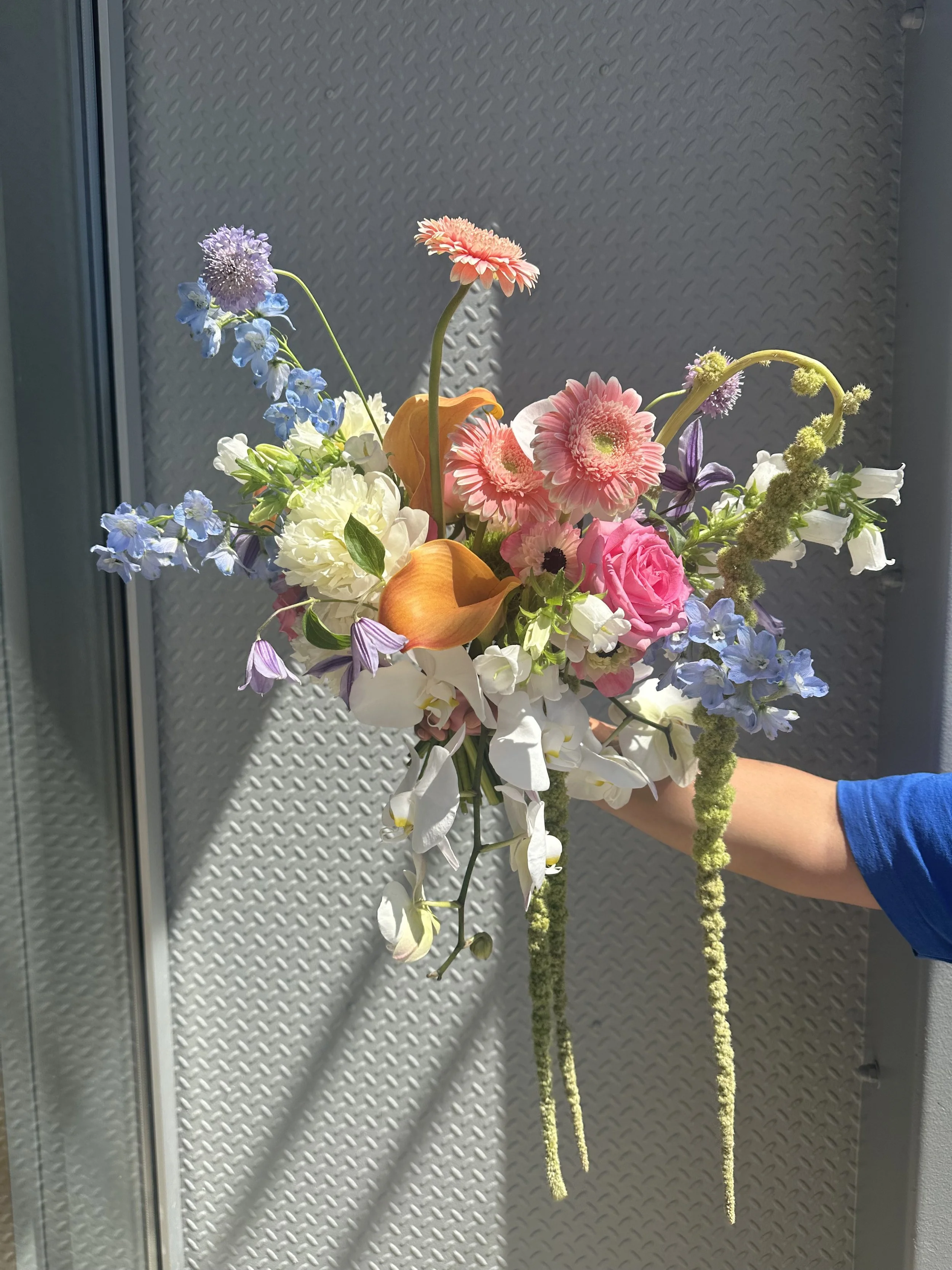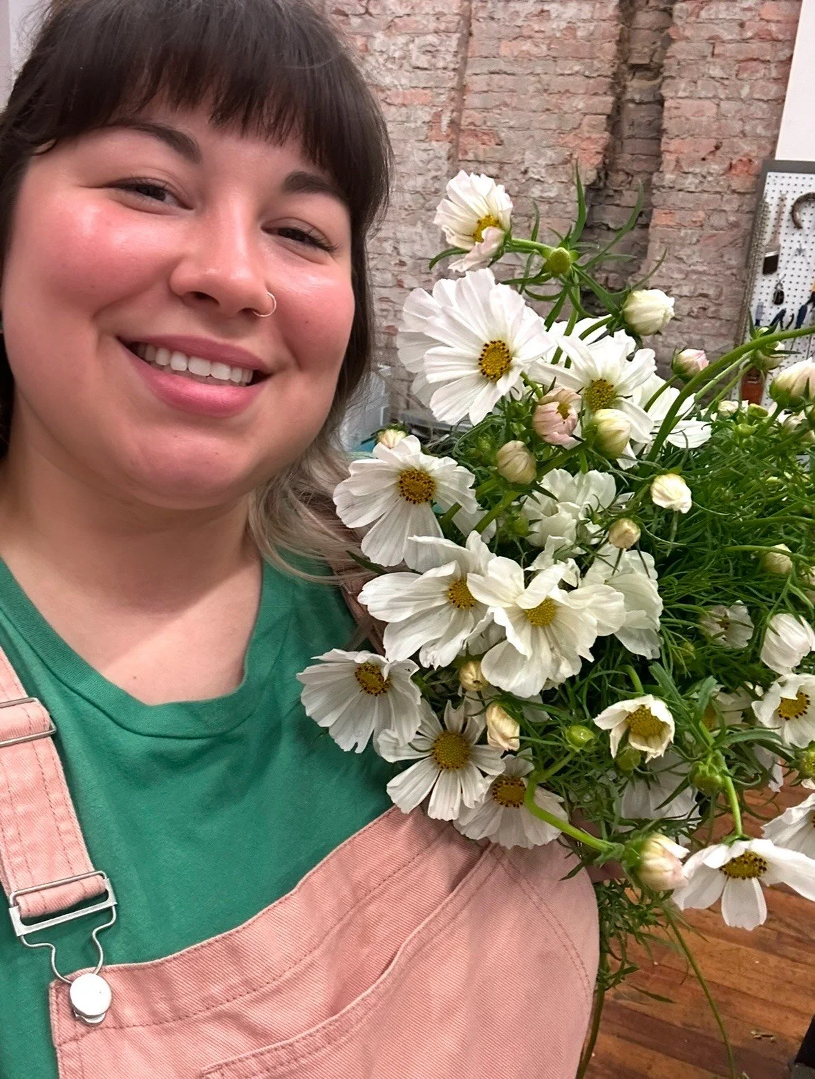 The love of floristry found me in 2024. I’ve always loved flowers, I mean who doesn’t, but it wasn’t until getting married in 2022 that I had a little a-ha moment, sprouting like a seedling in the back of my mind. I DIY-ed the table florals in vases I had thrown, and hired a professional for the rest. It was a lot harder than I’d anticipated! I was fascinated by the work it takes, and this fascination unlocked a beautiful new algorithm of floral masterpieces I’d studied and admired for a couple of years. In 2024, I found my first floral assistant position and learned quickly, flourishing my way up to a floral designer title in no time.